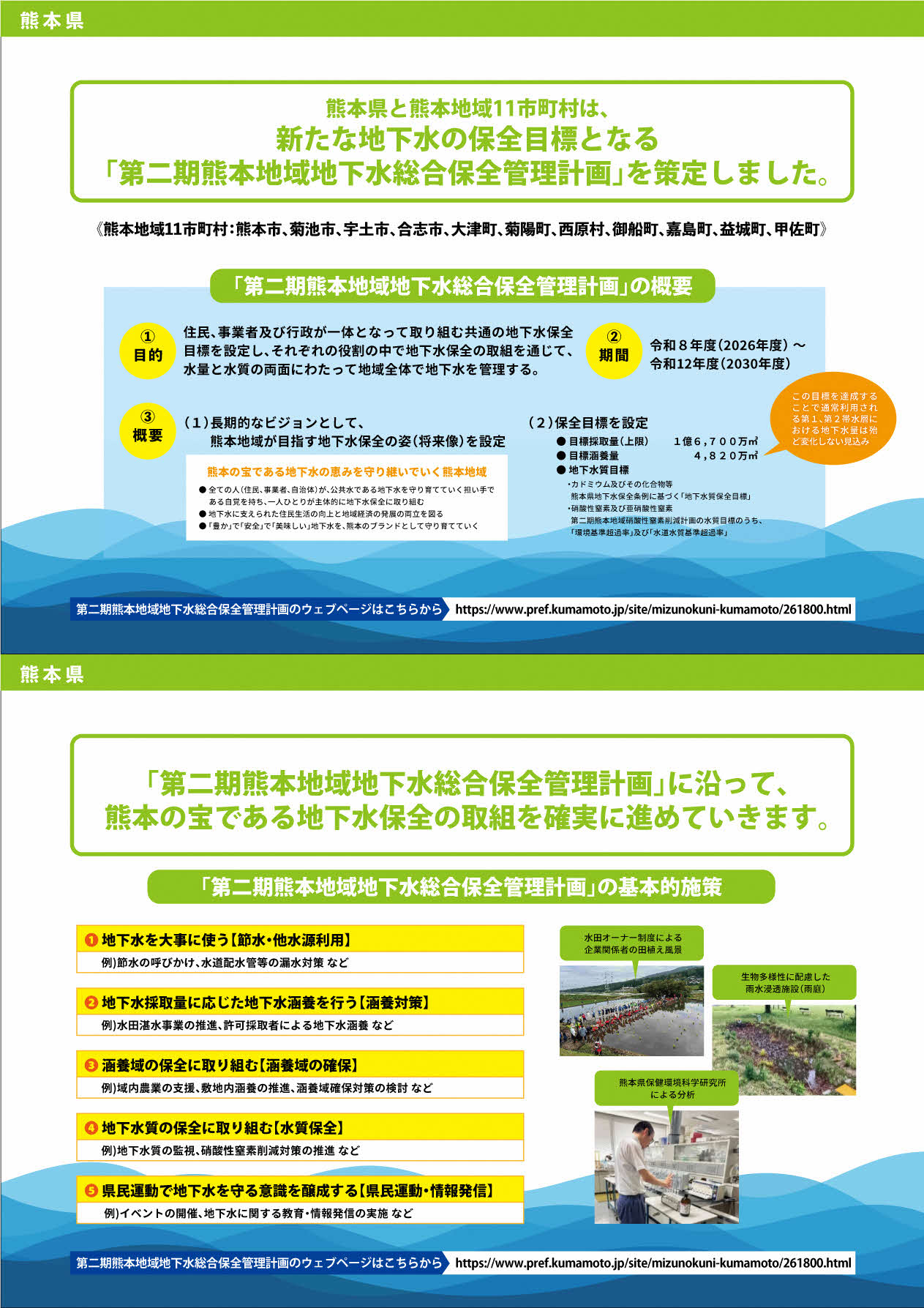 熊本の地下水を確実に守るため、部局横断的に、地下水量及び地下水質の保全の取組を強力に進めるとともに、県民への情報発信を行うために会議を開催する。